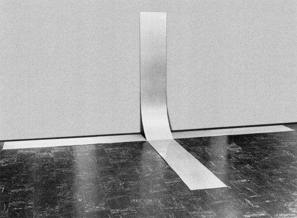 In the Endless gallery was a spatially-focused work by David Lamelas, entitled “The Situation of Four Aluminum Plates.” Consisting of just four flexible aluminum panels, “Situation” is an unfixed installation that changes its meaning depending on the space it inhabits. It compels the viewer to arrange themselves in accordance with how they feel it ‘ought’ to be perceived.